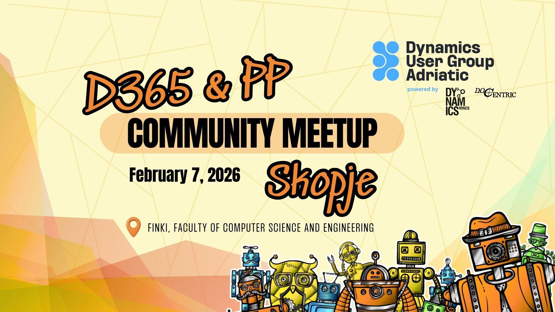 Со задоволство ве покануваме на вториот Dynamics User Group Adriatic Meetup во Скопје! Придружете ни се на цел ден исполнет со учење, споделување и поврзување со Dynamics 365 & Power Platform заедницата.